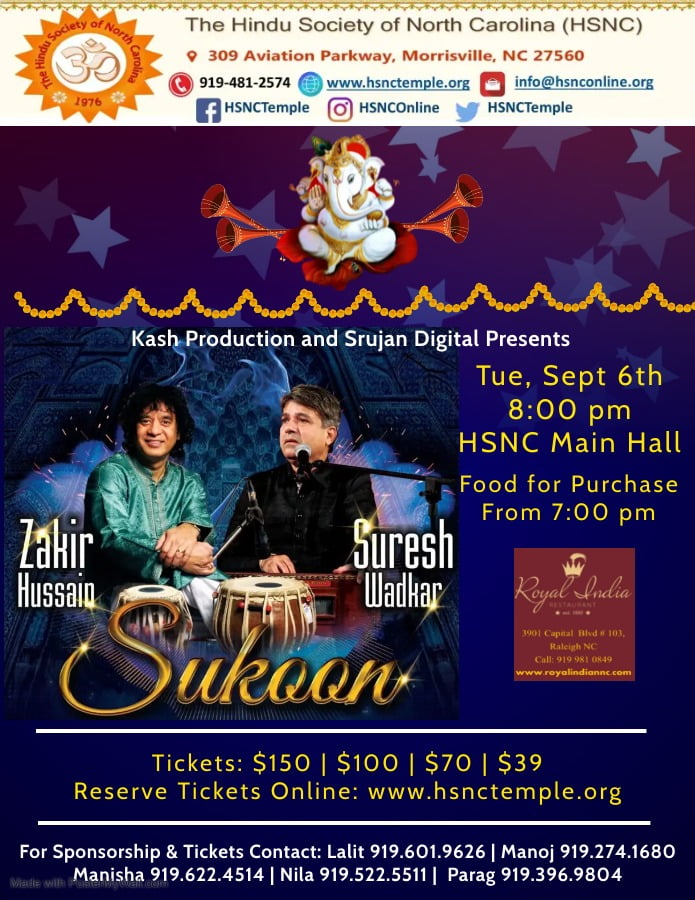 Don’t miss ‘Sukoon’ with Padma Bhushan Zakir Hussain and Padmashri Suresh Wadkar Live Bay Area